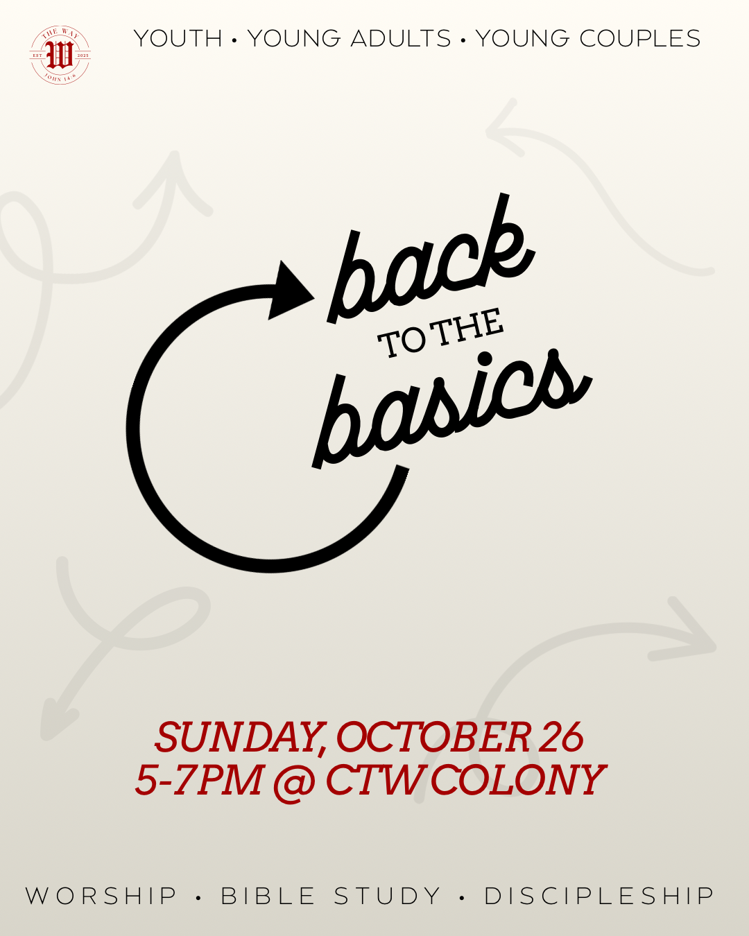Our mission at Church of The Way is to SEEK THE LOST, STRENGTHEN THE WEAK, AND SEND THE STRONG to make disciples of Jesus Christ.